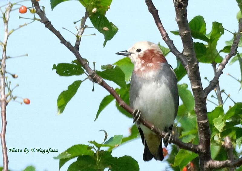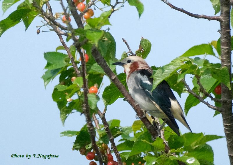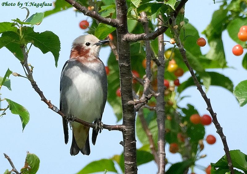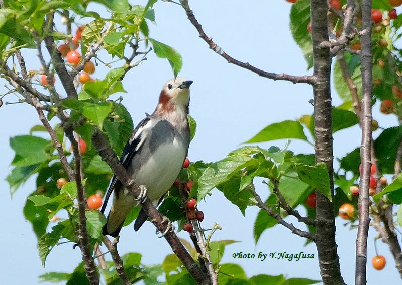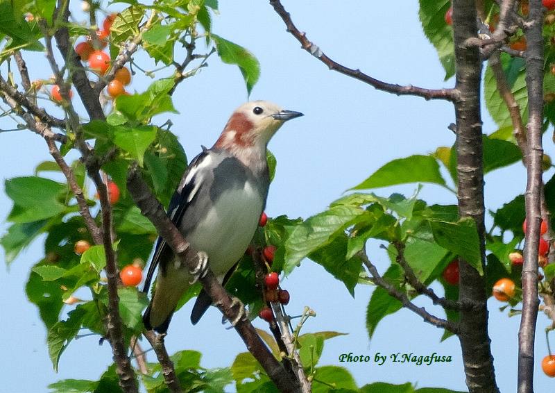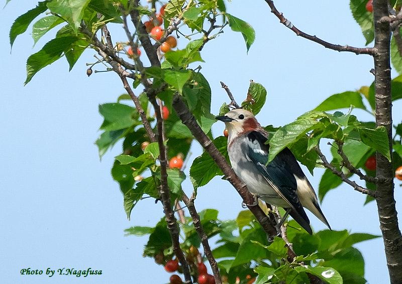 この日、毎年サクランボのなる木にコムクドリが来ました。