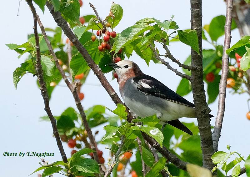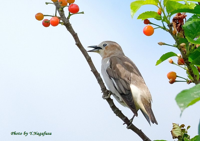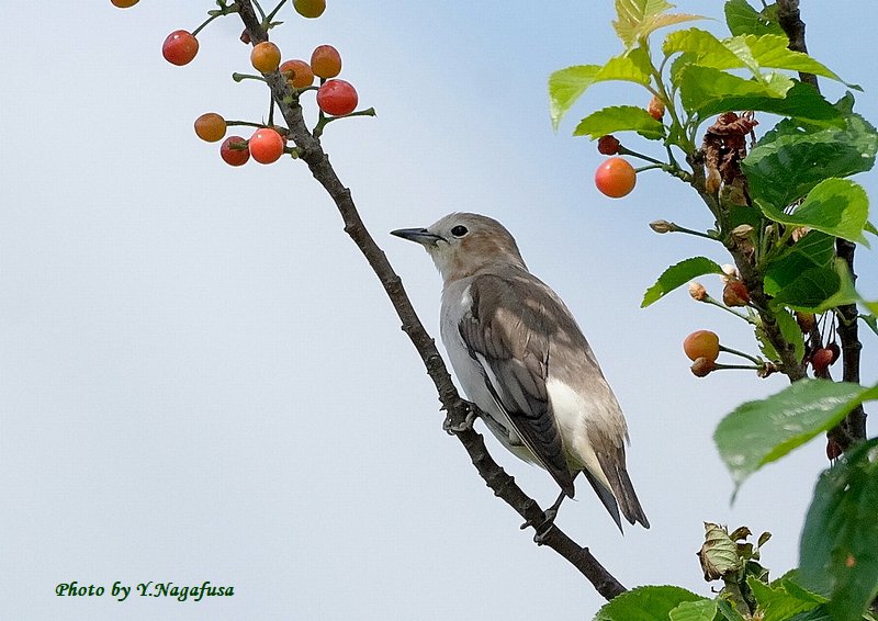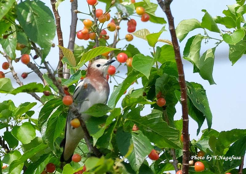2025年5月20日 コムクドリ④ 枝留まり 本日は、風が強い。 5月5日撮影のコムクドリの続きです。 この日、毎年サクランボのなる木にコムクドリが数回来ました。 コムクドリです。mono 物