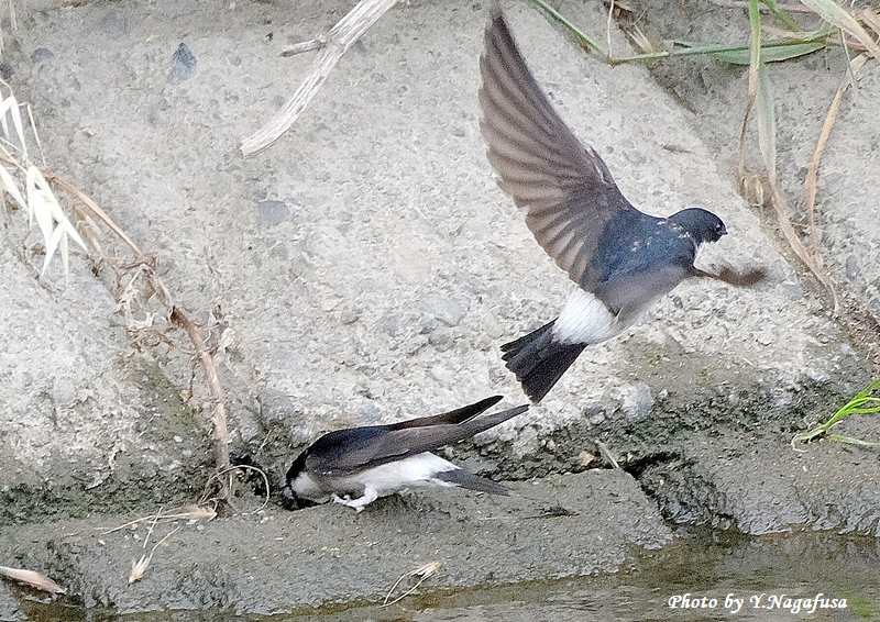 この日、川の土手の土を運ぶイワツバメに会えました。