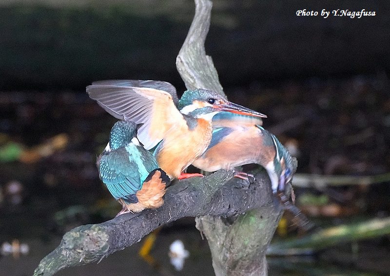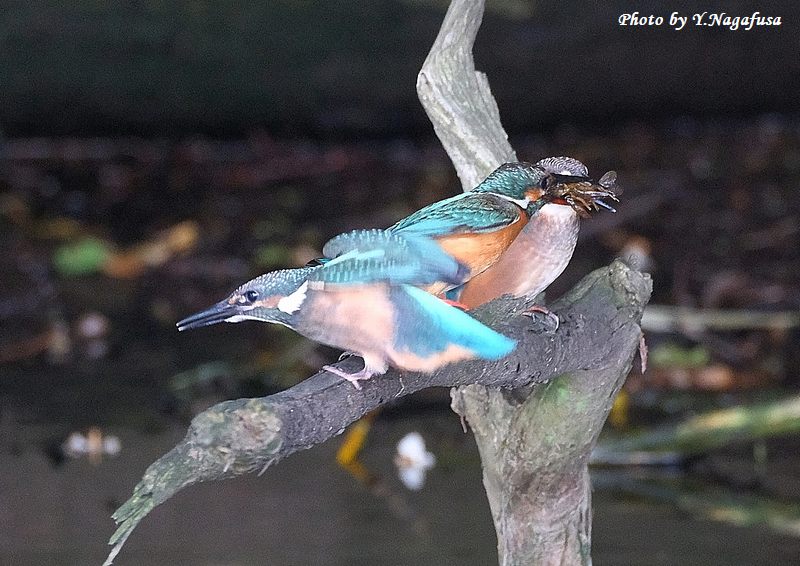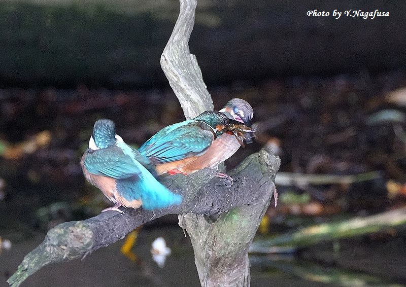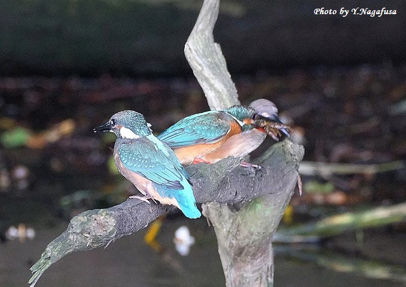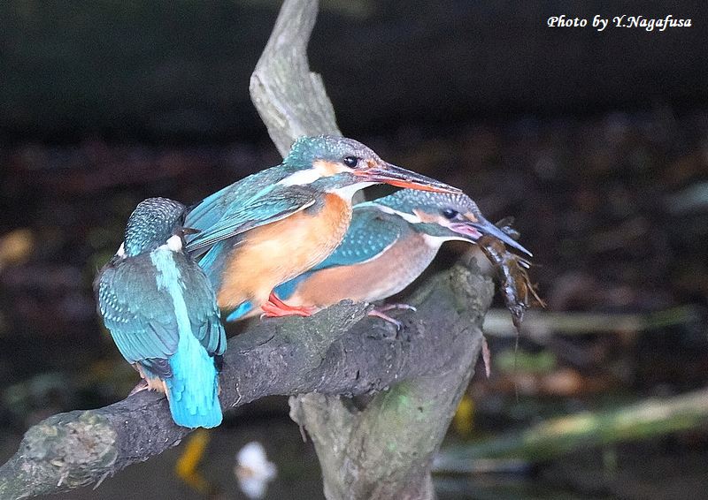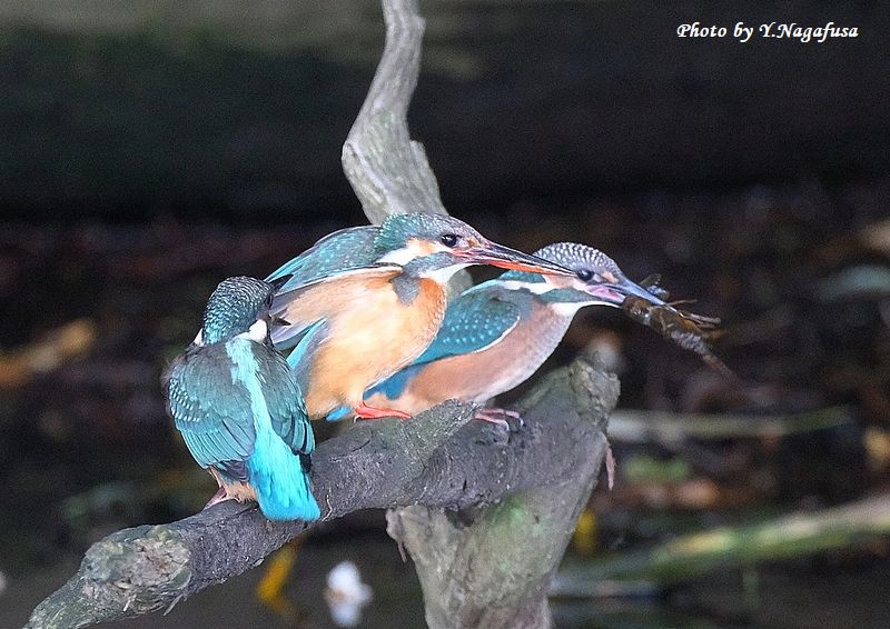 2025年6月14日 カワセミ4 給餌 本日は、空振りでした。 6月6日撮影のカワセミの続きです。 この日、カワセミ雛への給餌は何回もありました。 カワセミ中央が親、両サイドが雛です。mono 物