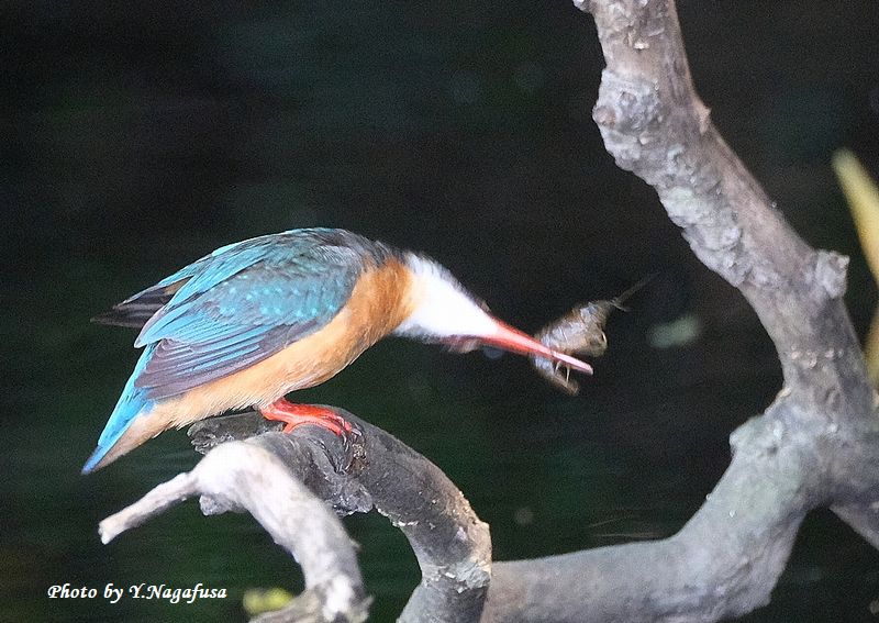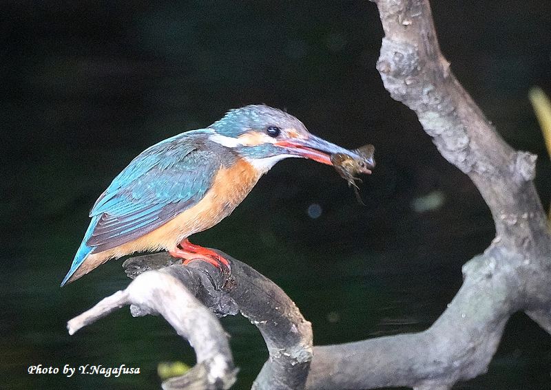 2025年7月9日 カワセミⅢ ♀、採餌 本日は、今年始めてチョウトンボが撮れました。 6月29日撮影のカワセミの続きです。 この日、カワセミの♀親の採餌場面がありました。 カワセミ♀です。mono 物