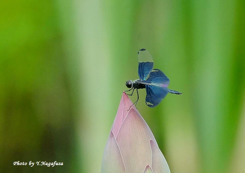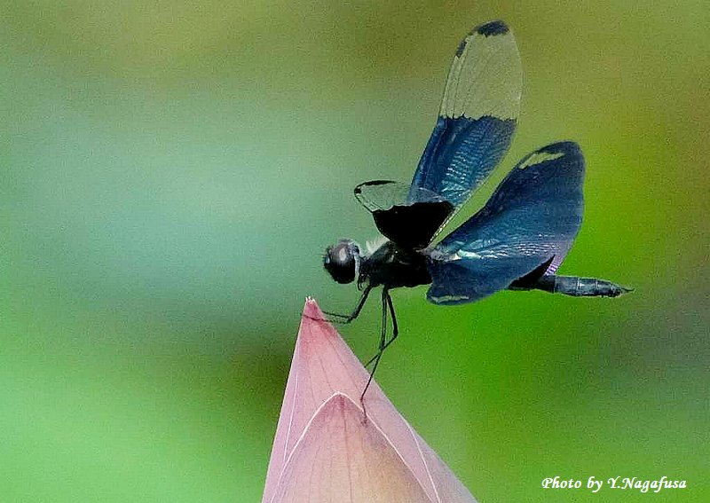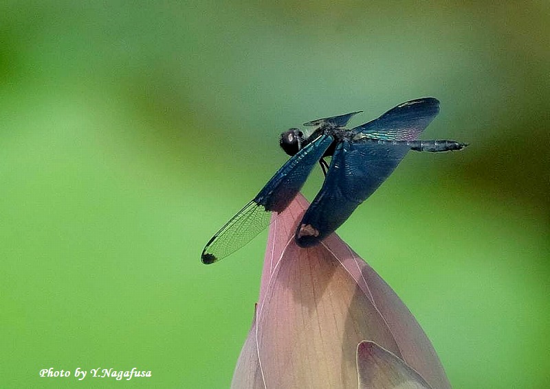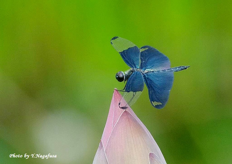 この日、チョウトンボが蓮の蕾に何回も留まりました。