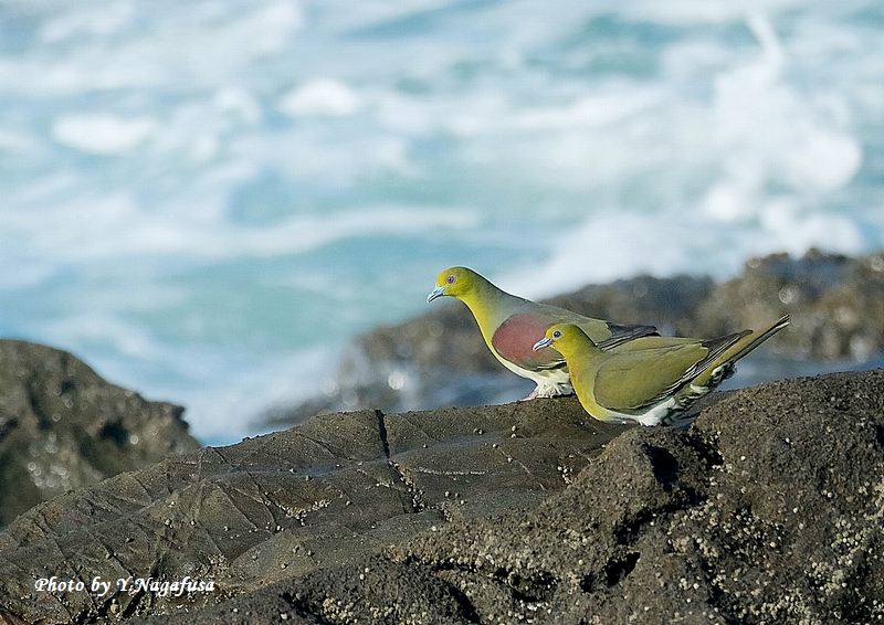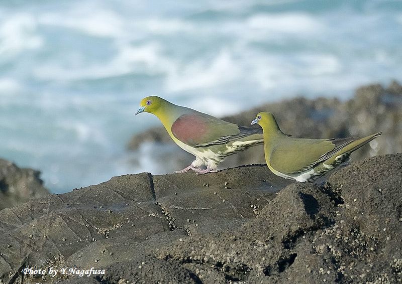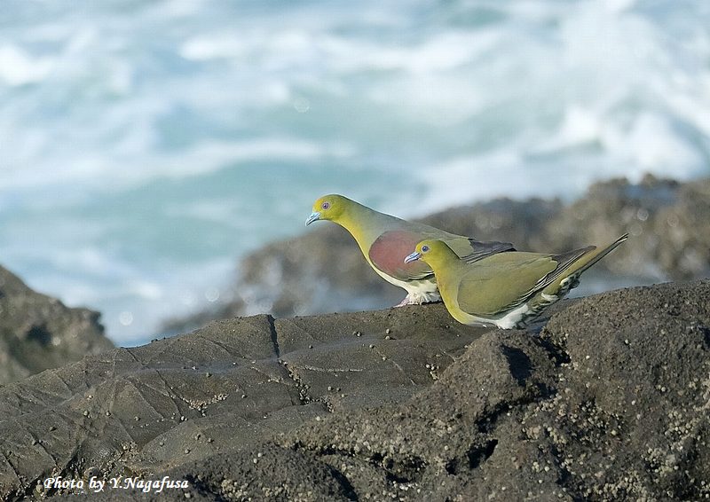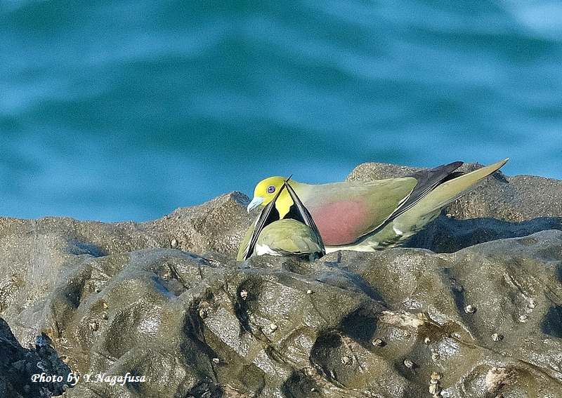 2025年7月31日 アオバト10 ペア、海水飲み 本日は、屋外水道工事の確認の為自宅待機。 7月1日撮影のアオバトの続きです。 この日、アオバトをいっぱい撮ったので続きを掲載します。 アオバト左♂、右♀です。mono 物