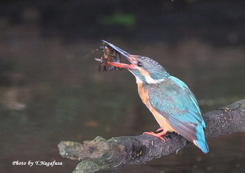2025年8月9日 カワセミ3 採餌 本日は、小さな被写体を見つけてからカメラを構える前に見逃してしまいます。残念。 7月12日撮影のカワセミの続きです。 この日、カワセミは何回もザリガニを捕りました。 カワセミです。mono 物