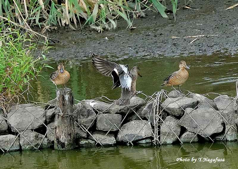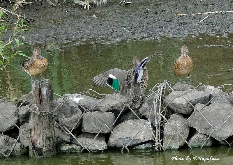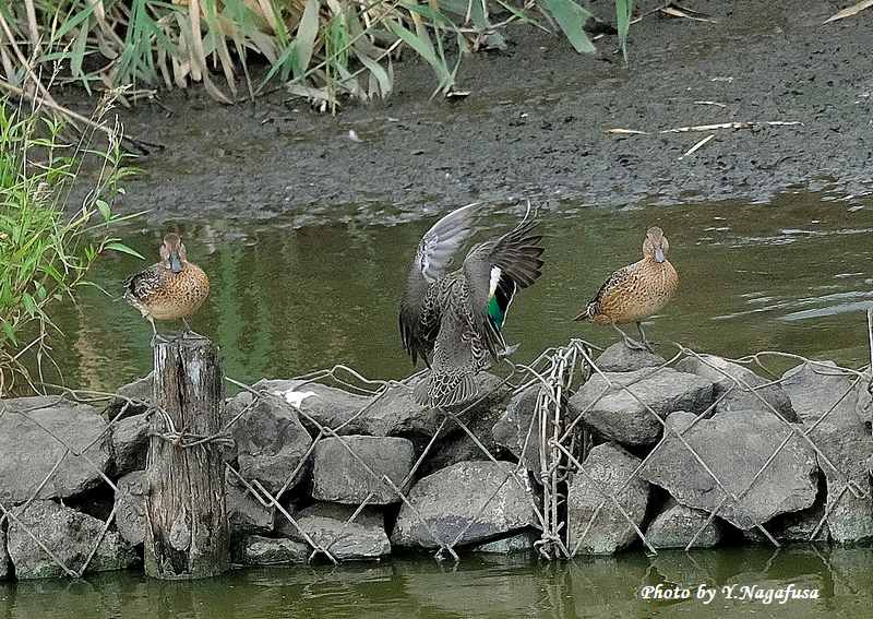 この日、遊水地にコガモが数羽来ていました。
