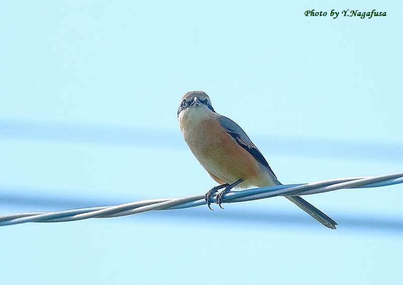 この日、田園地帯を歩いているとモズがいました。逆光で少し残念。