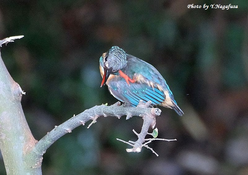 2025年10月15日 カワセミ♀① 枝留まり、頭掻き