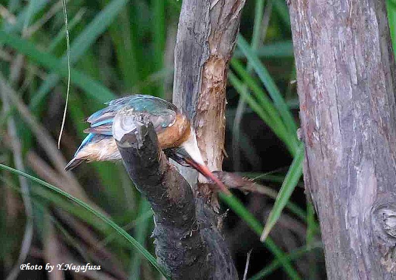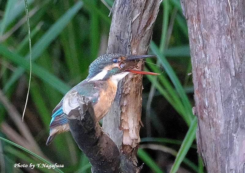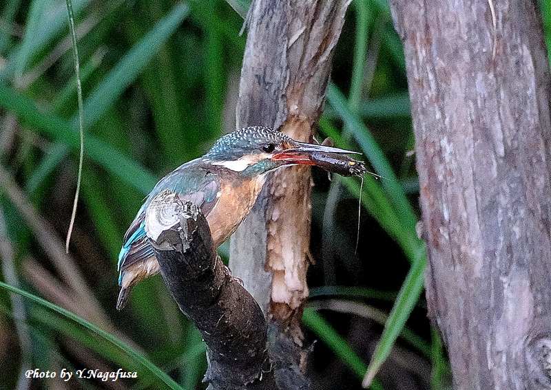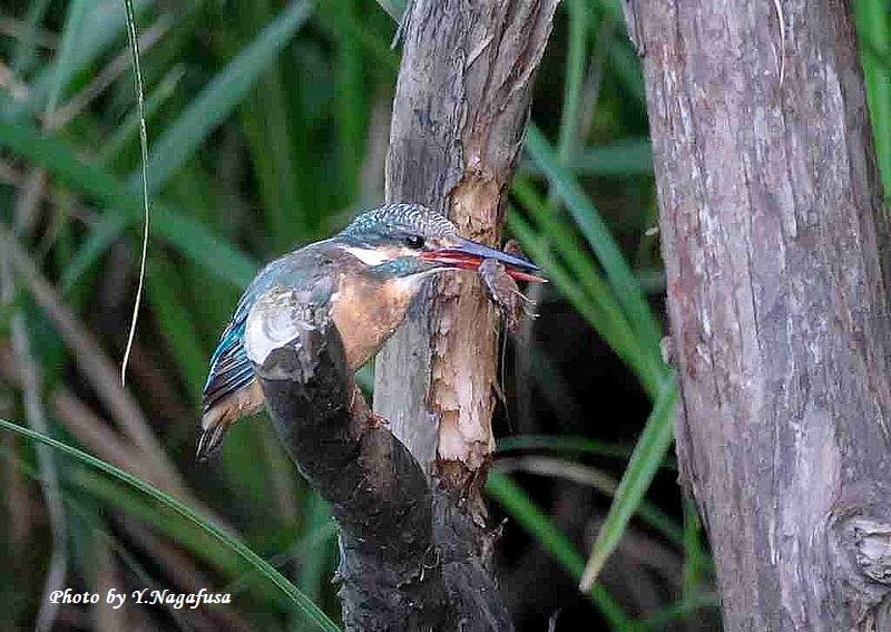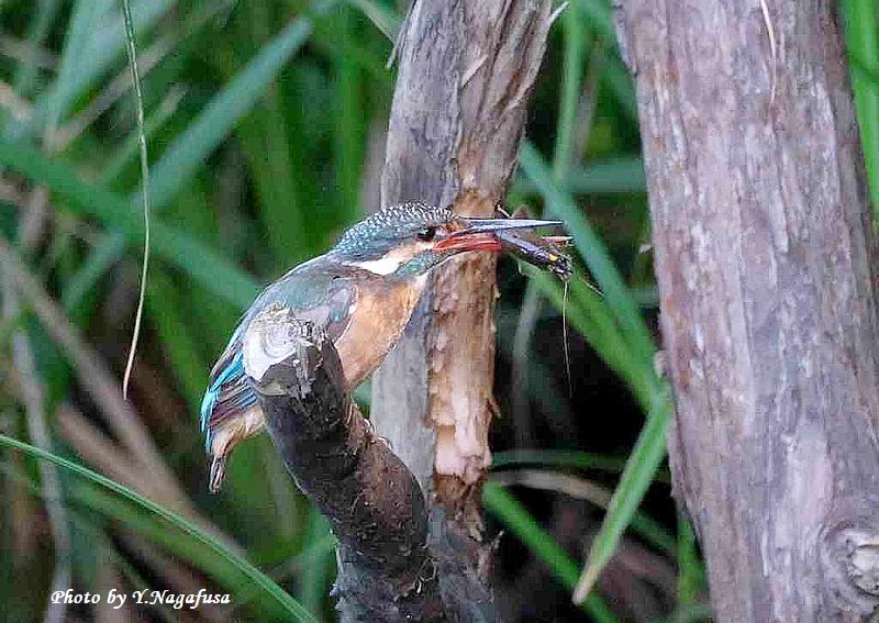 この日、カワセミ幼鳥がザリガニを捕りました。