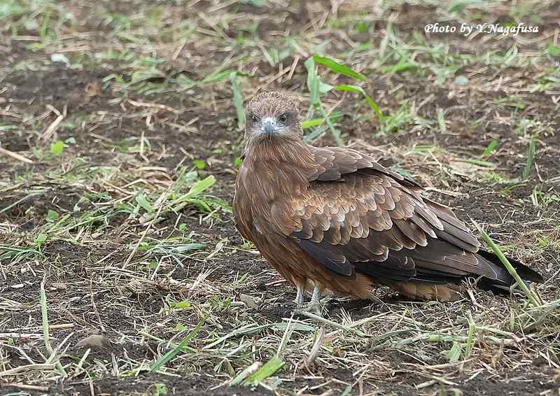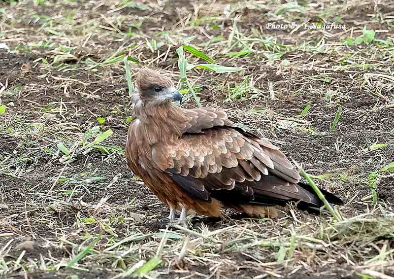 この日、畑でトビがマッタリしていました。