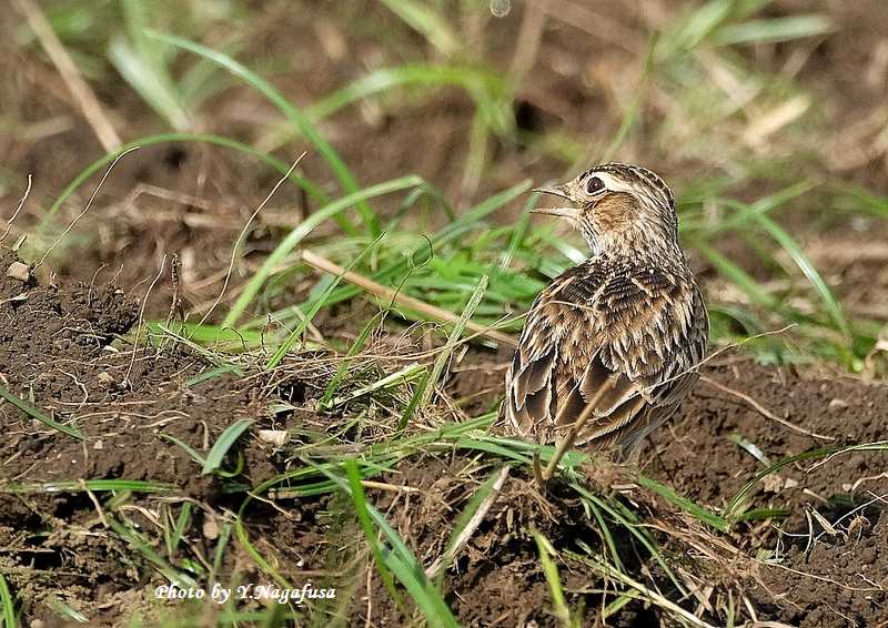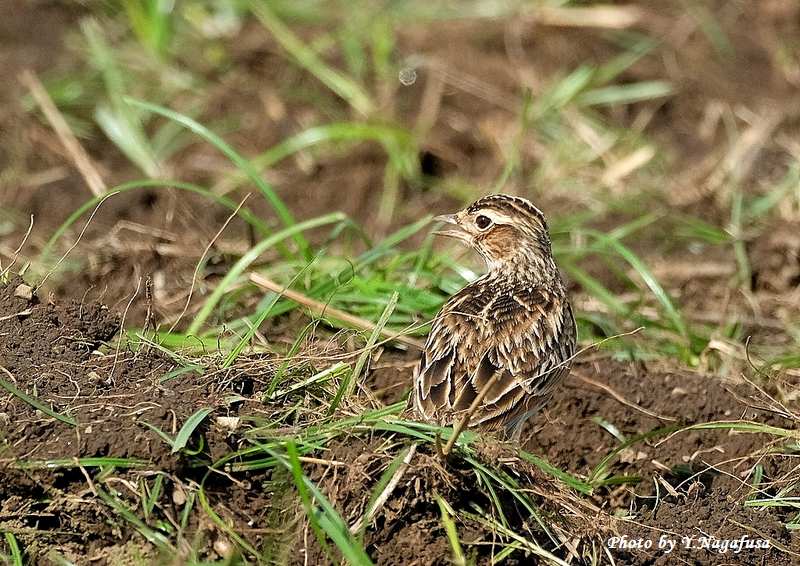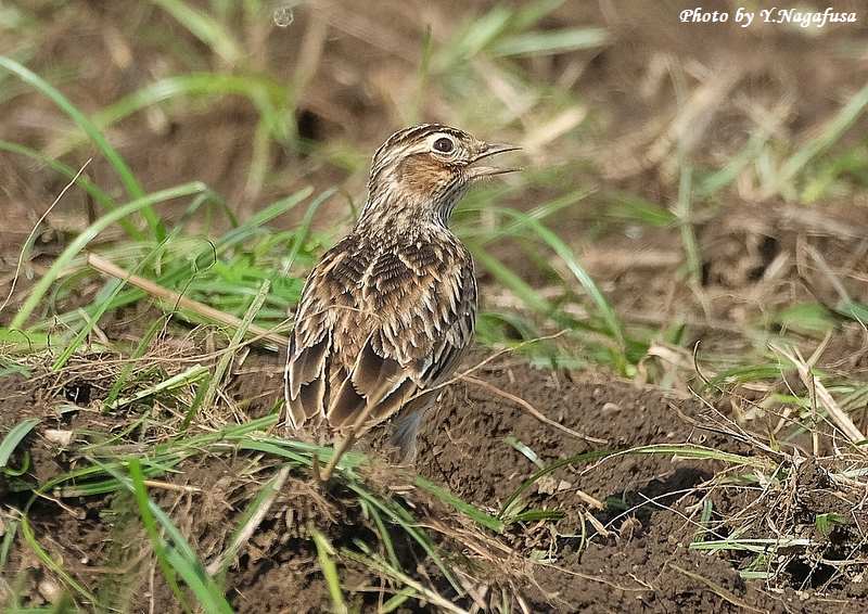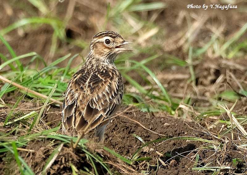この日、公園を歩いているとすぐ近くにヒバリがいました。