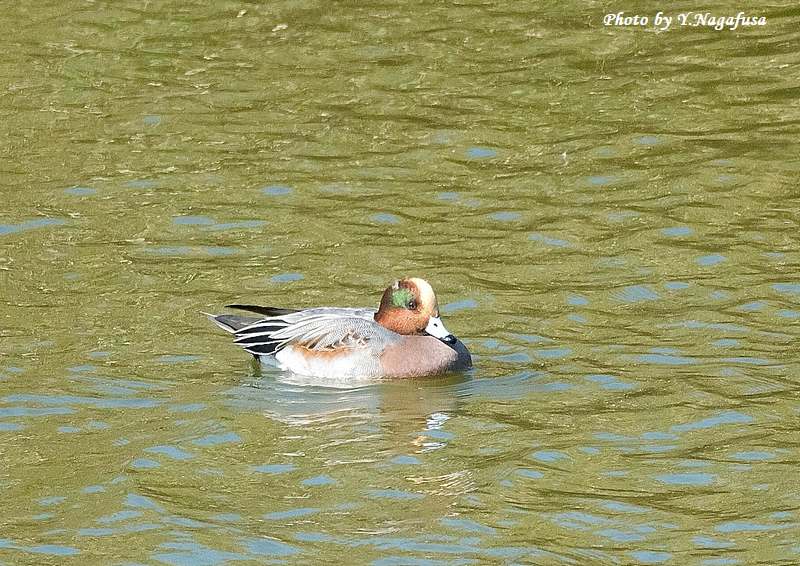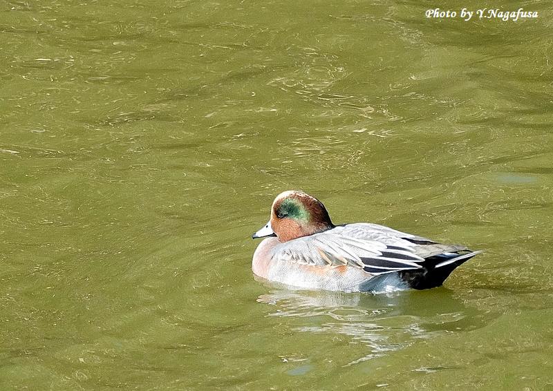 2025年11月9日 アメリカヒドリ? 留まり物 本日は、雨。 11月3日撮影のアメリカヒドリ?です。 この日、ヒドリガモの群れの中に1羽だけアメリカヒドリに似た個体がいました。 ヒドリガモと何かの交雑個体でしょうか? アメリカヒドリ?です。mono 物