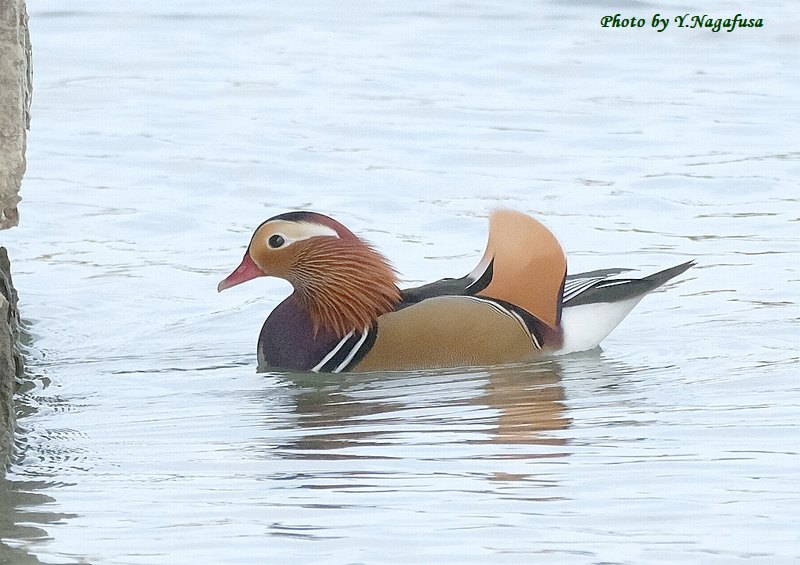2025年11月18日 オシドリ1 ♂留まり物 本日は、冬物準備。 11月11日撮影のオシドリ♂です。 この日、オシドリ♂が時々見える位置まで出てきてくれました。 オシドリ♂です。mono 物