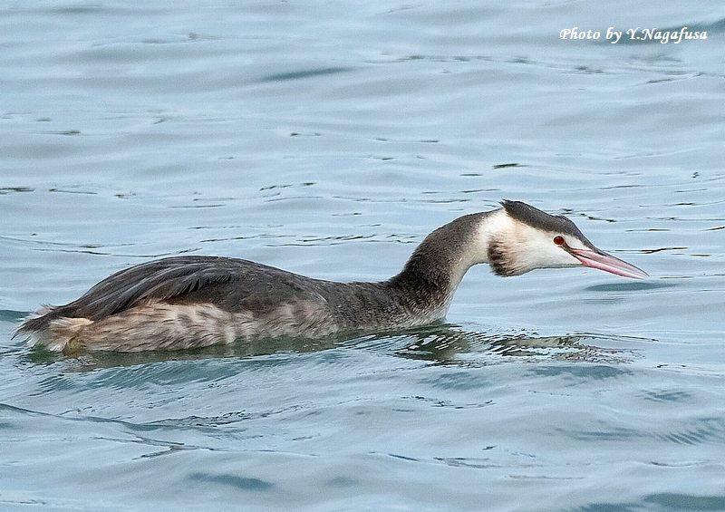 2025年11月22日 カンムリカイツブリ 留まり物 本日は、来年のカレンダー作成。 11月11日撮影のカンムリカイツブリです。 この日、カンムリカイツブリが近くに来てくれました。 カンムリカイツブリです。mono 物