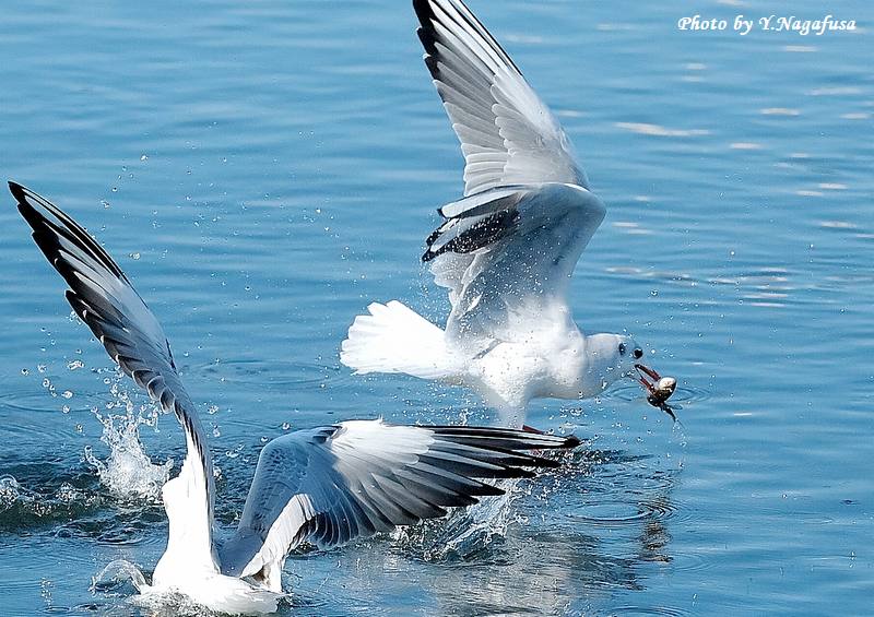 この日、ユリカモメは何回も飛び込みました。