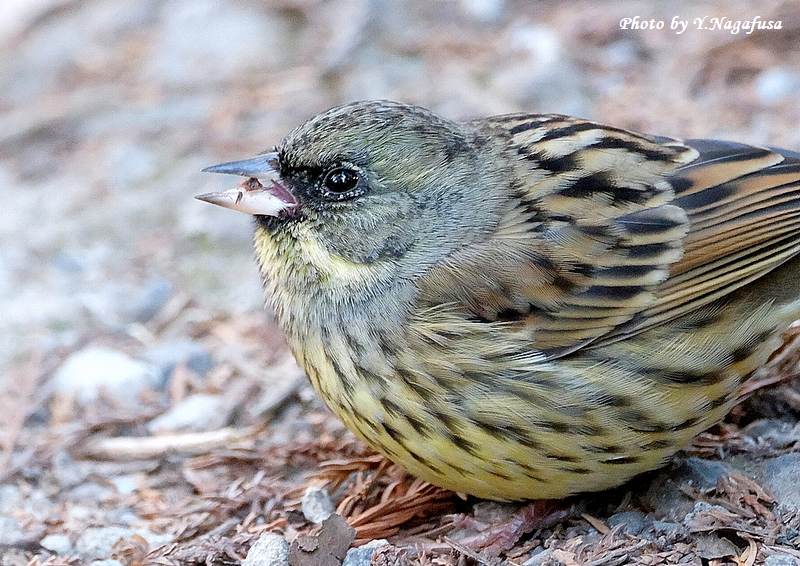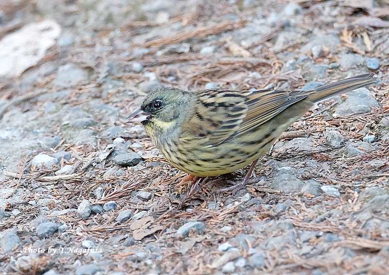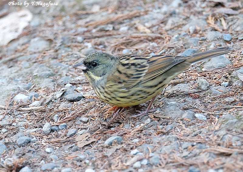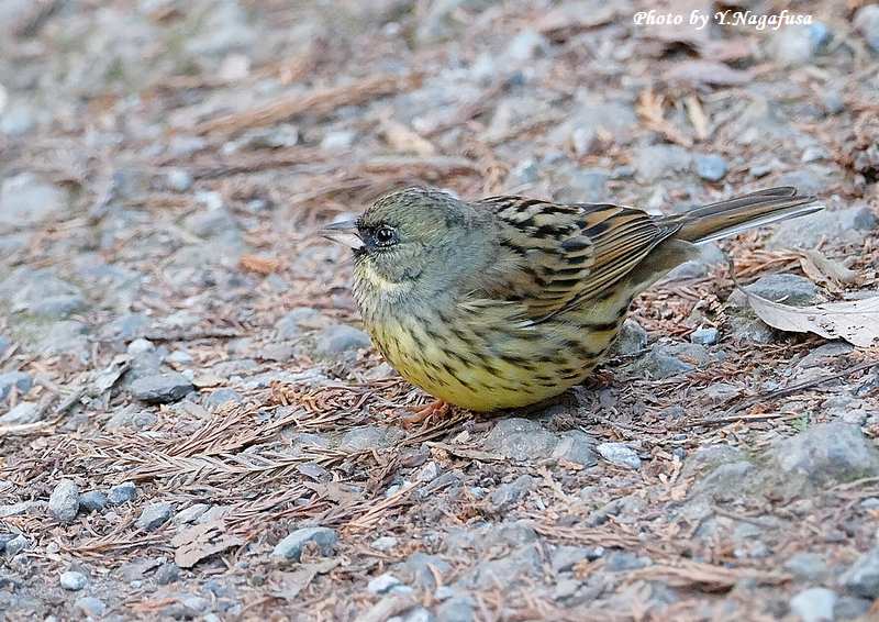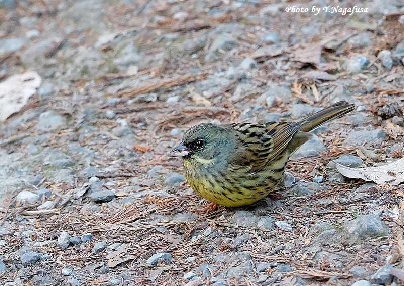 この日、公園の通路にアオジが出てきました。