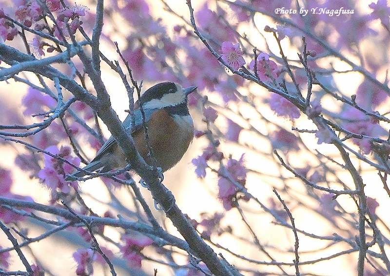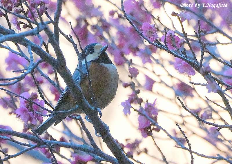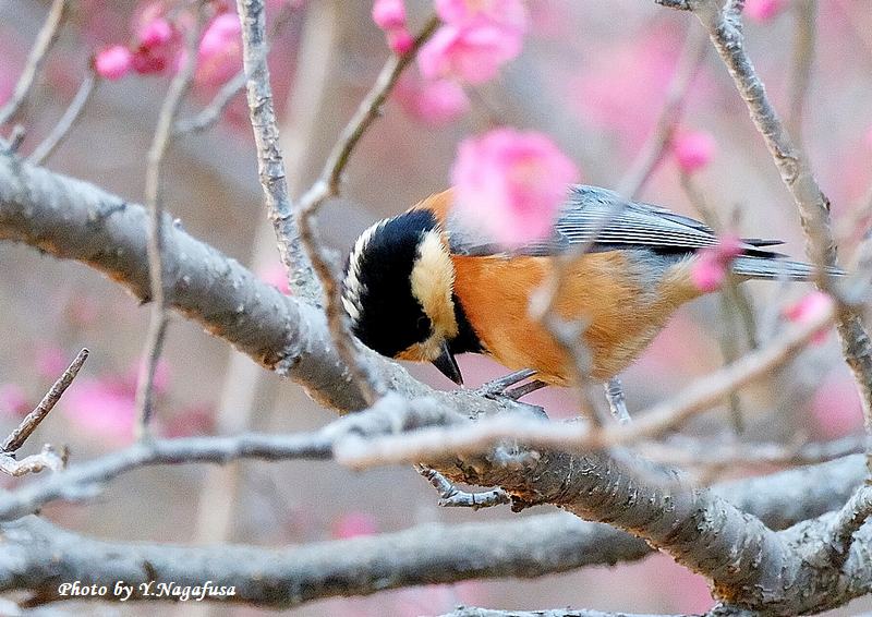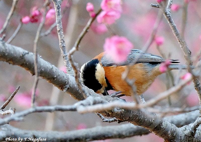 この日、ヤマガラが紅梅の近くに来たが良い場所に来てくれません。