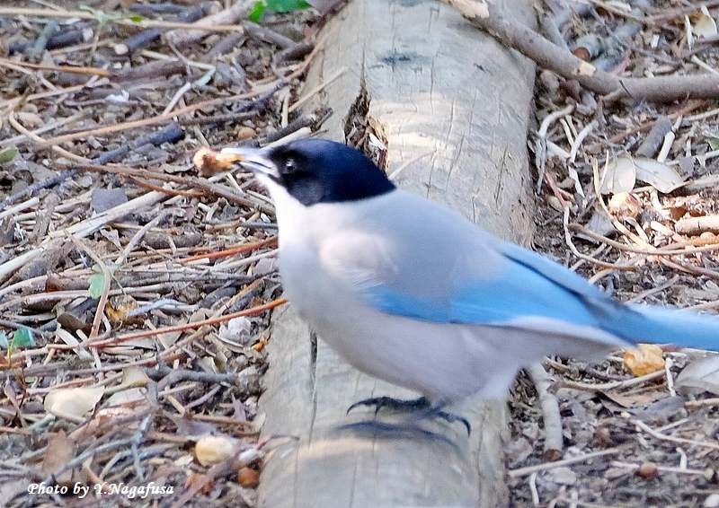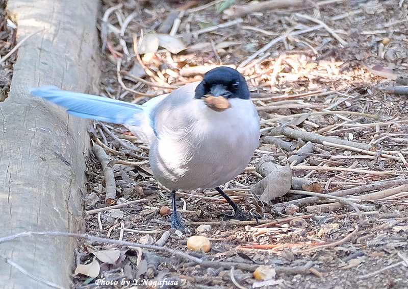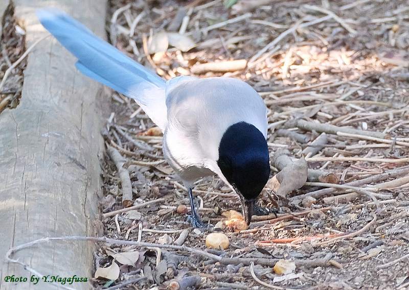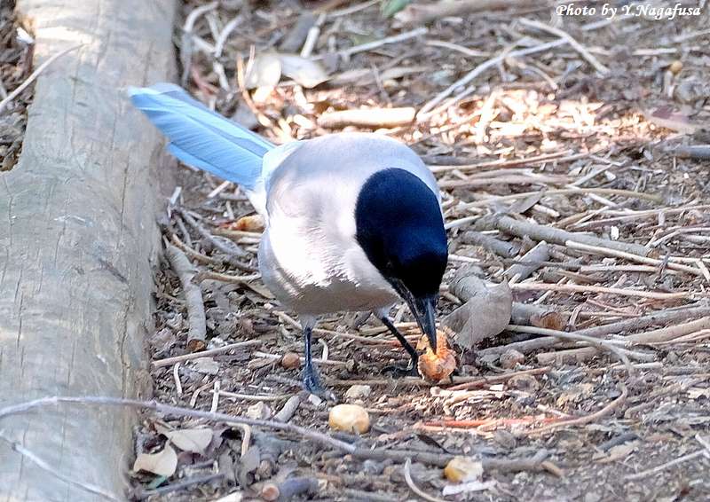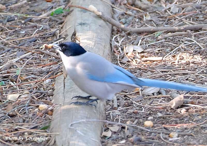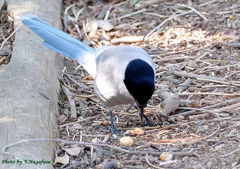 この日、日陰の地上にオナガが降り採餌して居ました。