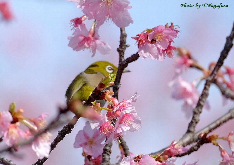 この日、河津桜に数羽のメジロが来ていました。まだ掲載します。