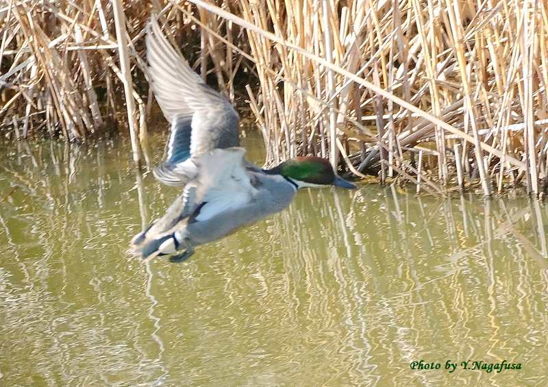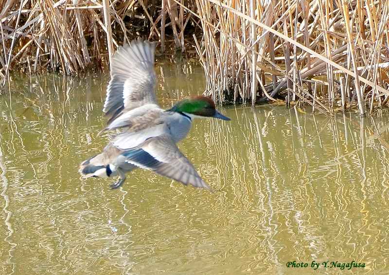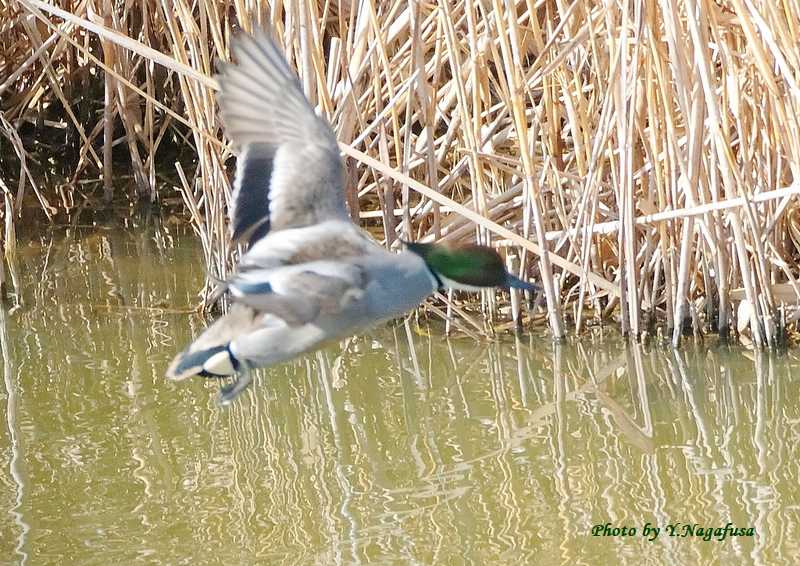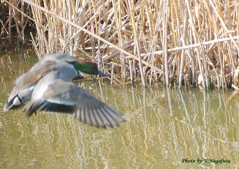 2026年3月21日 ヨシガモⅡ 飛翔 本日は、キジ♀を見ました。 3月1日撮影のヨシガモの都築です。 この日、ヨシガモの飛翔が撮れたと思ったがピントが背景に取られていました でも掲載します。 ヨシガモです