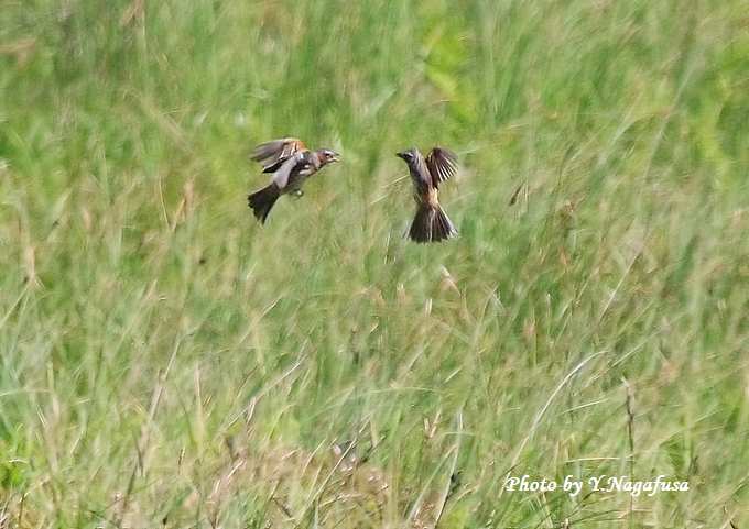 高原で鳥を捜して歩いていたら、ホオアカのバトルに遭遇しました。